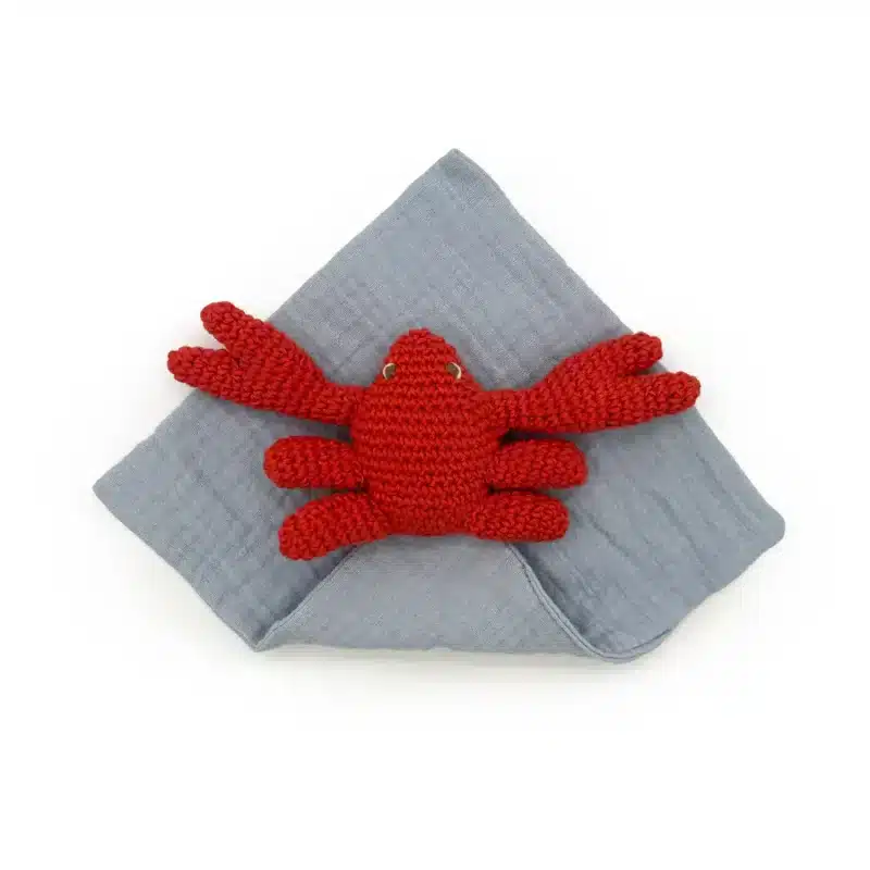Ce doudou en forme de crabe est une idée cadeau de naissance original et poétique.