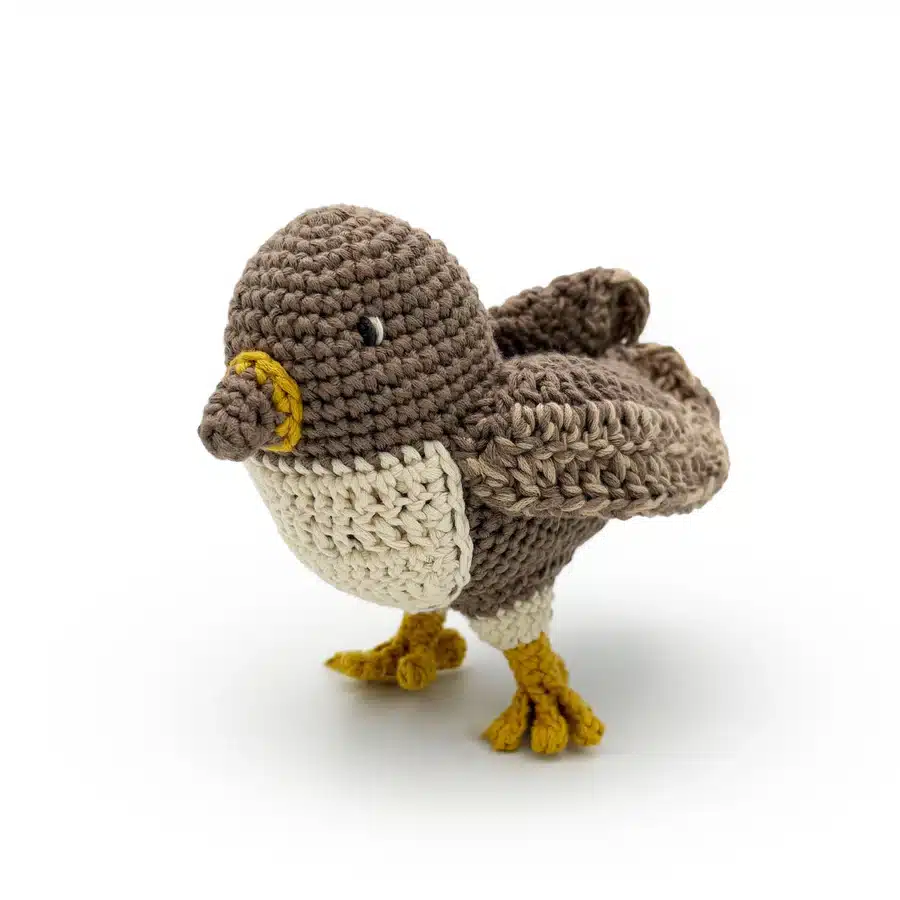 Ce jouet est fait main au crochet par nos artisanes, des femmes aux doigts de fĂ©e. C’est un jouet fabriquĂ© Ă  l’ancienne de maniĂšre artisanale et Ă©thique. Sa facture, ses dĂ©tails et sa soliditĂ© en font un jouet de haute qualitĂ©.