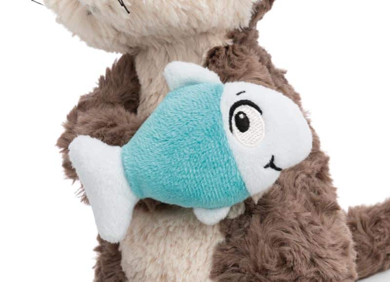 L’adorable loutre Oda enchante avec sa fourrure bouclée en peluche NICI toute douce, dans des tons de gris et de beige, ses petites oreilles en peluche, son nez noir orné de moustaches, ses adorables yeux en boutons NICI et sa longue queue de loutre. Dans ses petites pattes, elle tient son ami, un poisson turquoise – un détail tendre qui reflète sa nature joueuse et amicale. Que ce soit pour des câlins, des jeux, comme fidèle compagne de voyage ou comme un cadeau irrésistible, Oda la loutre saura conquérir le cœur de tous les amoureux des loutres, petits et grands.