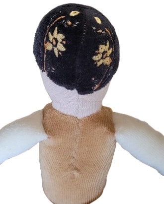 Cette poupée en chiffon a été entièrement conçue et fabriquée à la main par Alexia Naumovic à Orgeval (région parisienne) pour une exclusivité Terre d’Ours !