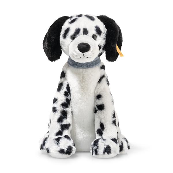 Bons points pour ce chien : ce dalmatien Oskar assis mesure 27 cm et est réalisé en peluche douillette. Avec son pelage typique noir et blanc éclatant, cet ami tacheté est vraiment remarquable. Son collier bleu en soft boa contraste joliment avec sa fourrure noire et blanche. Ses yeux lui donnent un regard affectueux qui invite au jeu et au câlin. Les sacs de granulés dans ses pattes, ses pieds et son corps assurent une grande stabilité à ce fidèle compagnon à quatre pattes. C’est un gardien idéal pour une chambre d’enfants et un adorable chien pour toute la famille.