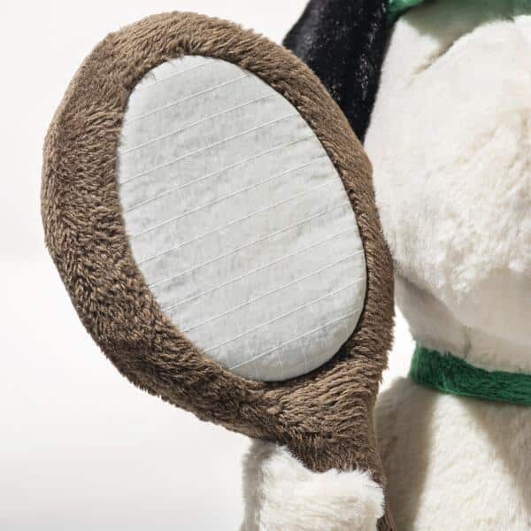 Snoopy, le célèbre beagle des Peanuts, se révèle être un pro du tennis et conquiert les cœurs avec son charme. Il mesure 22 cm et est fabriqué en peluche toute douce. Ses yeux brodés soulignent son expression caractéristique, tandis que des petits sacs de granulés dans les fesses et les pieds assurent une bonne stabilité. Sa tenue de tennis conçue avec amour, avec une visière assortie et une raquette de tennis en peluche, est harmonieusement complétée par un collier vert. Avec son classique « bouton à l’oreille », Snoopy apporte de la joie sur et en dehors du court et reste un compagnon câlin pour la vie.